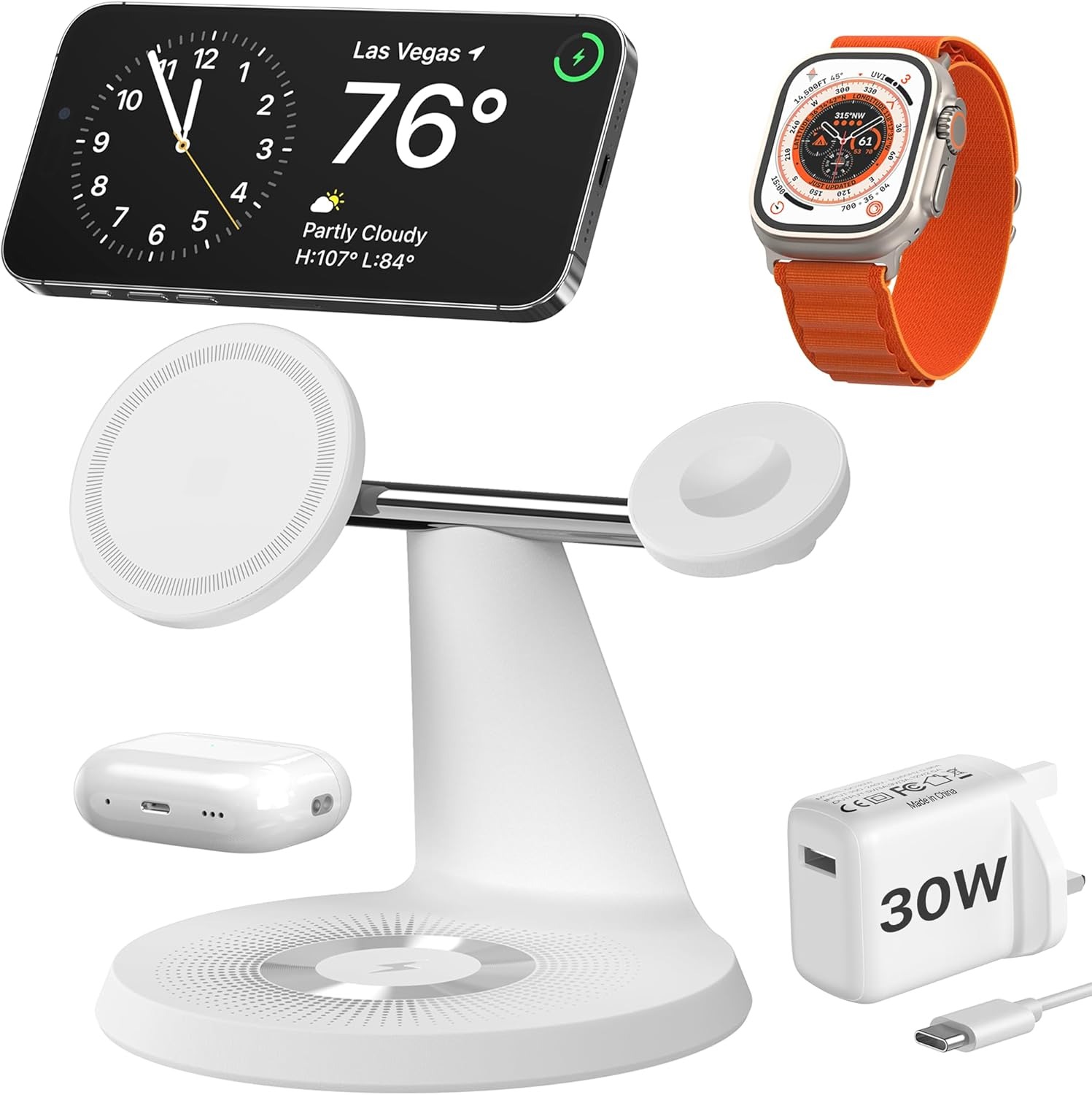 Compatibility: Supports MagSafe iPhones, AirPods, Apple Watch.